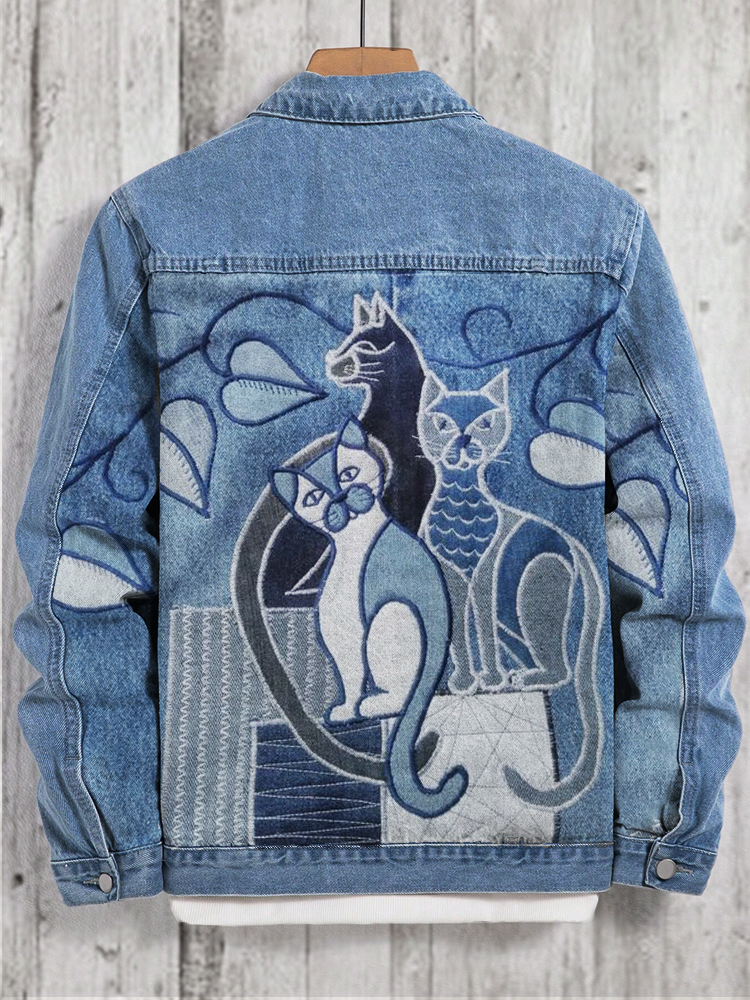 Vercoo Cats Patchwork & Embroidery Art Denim Jacket