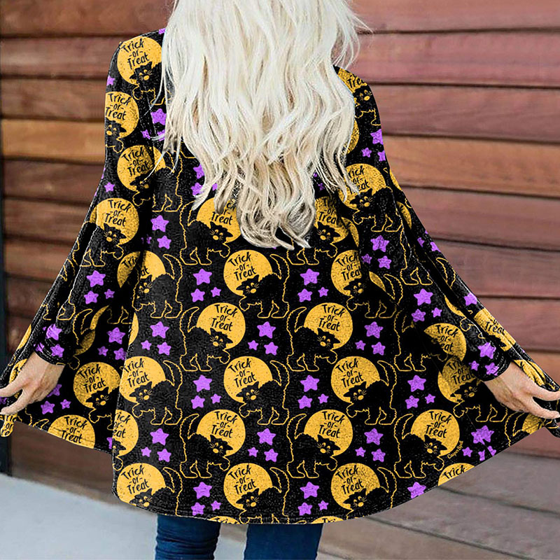 Vercoo Halloween Cat Print Long Sleeve Cardigan