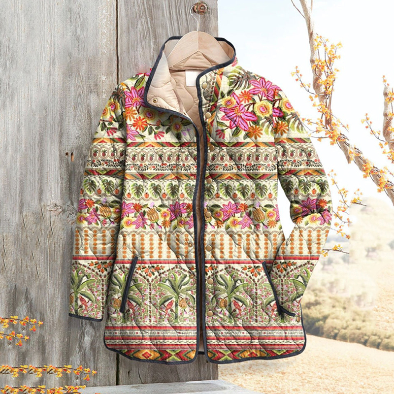 Women's Vintage Floral Art Print Casual Quilted Cardigan